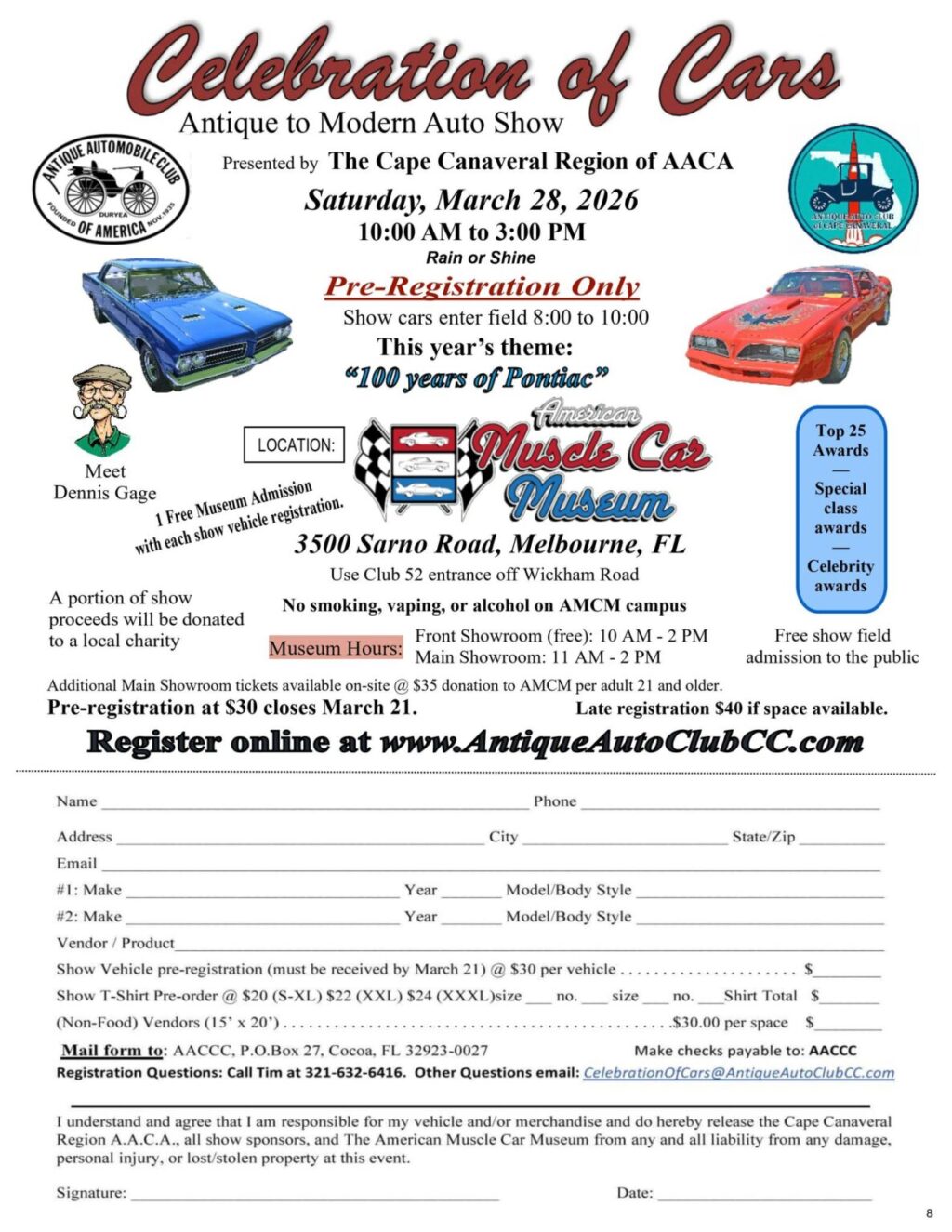 Celebration of Cars 2026 8:00 am – 3:00 pmMarch 28, 2026 American Muscle Car Museum3500 SarnoMelbourneFL, 32934 View LocationMap American Muscle Car Museum iCal Google View full calendar